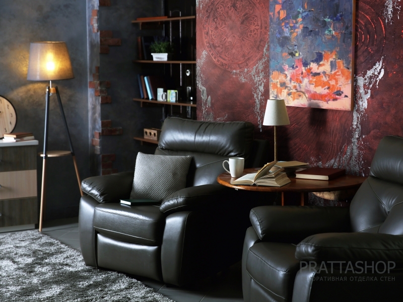 Гостевая комната с эффектом античных стен и элементами трафаретных узоров. Экологически чистый материал на основе гашенной извести и минеральных наполнителей, обладает высокой прочностью и износостойкостью. Благодаря использованию нескольких цветов специального финишного защитного материала VELATURA, покрытие приобрело красивое сочетание цветов и превосходную степень защиты от прямого воздействия воды. В качестве дополнительного эффекта глянцевых элементов в серо-белом оттенке использовалось покрытие ANTICO VENEZIANO CLASSIC.