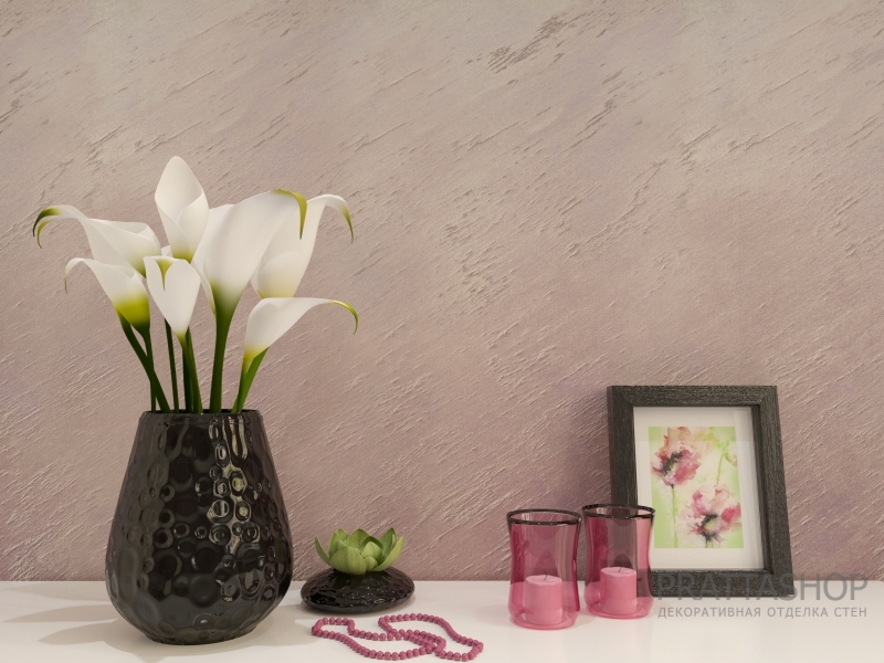 Интерьерное декоративное покрытие с кварцевым песочком и золотисто перламутровым эффектом. При использовании глубоких цветов и оттенков текстура становится более выраженной и глубокой, а под мягким освещением в спальне приобретает нежную текстуру косого дождика.