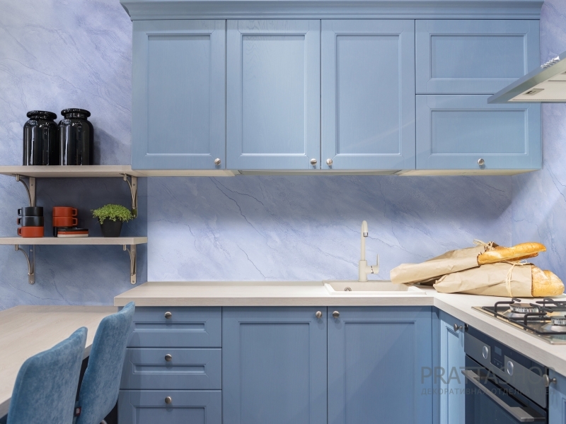 Матовое декоративное покрытие с эффектом голубой велюровой ткани. Экологически чистый материал на основе гашенной извести и минеральных наполнителей, обеспечивают покрытию высокую прочность и долговечность в эксплуатации. Благодаря особому составу, покрытие способно превратить простые цвета в игру легких и спокойных оттенков присущих настоящей велюровой ткани. Следует также отметить, что материал имеет особый сертификат пожаробезопасности, категории КМ-0, что делает его пригодным к использованию в любых интерьерах без ограничений по экологичности и безопасности.