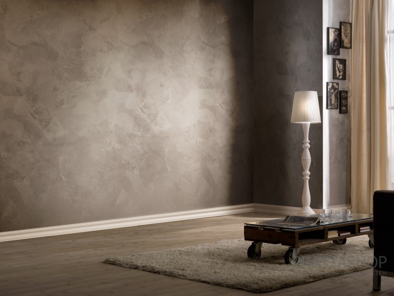 Декоративное покрытие для стен в интерьере с эффектом классического мокрого шелка. В данном случае темный цвет подчеркивает все изящества и глубину текстуры натуральной ткани с нежным тактильным эффектом.