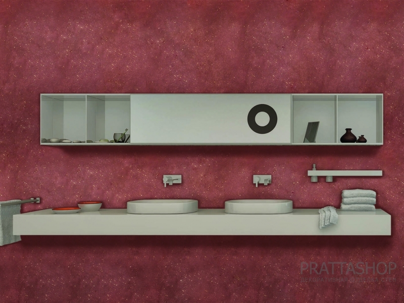 Интерьерное матовое покрытие с эффектом велюровой ткани прошитой редкими золотистыми нитями. Данное покрытие, при колеровке в различные цвета, обеспечит теплые оттенки, сопровождающиеся золотистыми вкраплениями микро частиц, которые в совокупности придают декору чарующий эффект благородной ткани. В покрытие можно добавлять, по своему усмотрению, специальные золотистые блестки, которые проявляются только в момент изменения угла обзора или освещения, что придаст поверхности дополнительный акцент с ненавязчивой привлекательностью. Покрытие является влагостойким и моющимся, поэтому не требует дополнительной защиты от влаги.