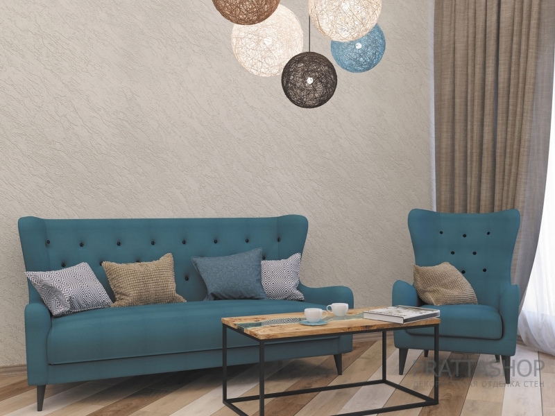 Интерьерное декоративное покрытие с текстурой натурального камня в гостевой комнате. Минеральная штукатурка на акриловой основе для создания различных фактур с эффектом натурального камня. Пластичные свойства материала и широкая цветовая гамма открывают огромные возможности для вашего творчества. Данное покрытие колеруется в массе, поэтому поверхность способна скрывать легкие царапины, что актуально для декорирования поверхностей в общественных местах.